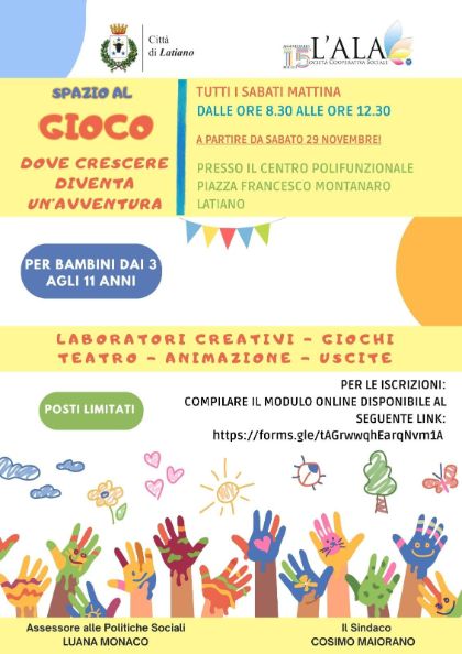 ISCRIZIONI ATTIVITÀ EDUCATIVE RICREATIVE PROGETTO "SPAZIO AL GIOCO DOVE CRESCERE DIVENTA UN’AVVENTURA"