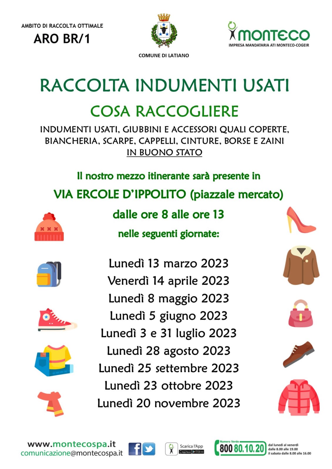 Si comunica il calendario della raccolta degli indumenti usati Anno 2023
