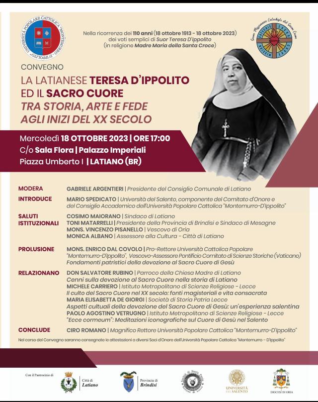 L'Amministrazione Comunale invita tutti i cittadini a partecipare al convegno sulla latianese "Suor Teresa D'Ippolito".