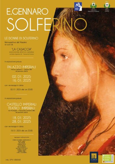 A quasi due anni dalla scomparsa, l'associazione artistico culturale "La Casaccia" rende omaggio al Maestro E. Gennaro Solferino con una retrospettiva dell'artista. Il Palazzo Imperiali di Latiano (BR) vedrà inaugurare l'evento il 02.01.2025 per rimanere in esposizione fino al 16.01.2025. La mostra sarà poi riproposta presso il Teatro degli Imperiali e parte del Castello Imperiali di Comune di Francavilla Fontana dove sarà inaugurata il 18.01.2025 per terminare il 28.01.2025.