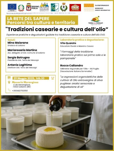Con Vito Quarato, dottore in Scienze delle Produzioni Animali e operatore didattico, prepareremo primo sale e pampanelle nel laboratorio "I formaggi della tradizione".