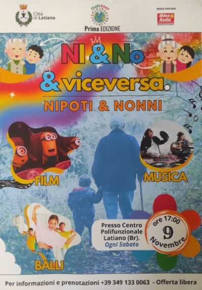 Da sabato 9 Novembre alle ore 17:00 presso il Centro Polifunzionale si svolgeranno gli incontri Ni & No, occasioni per unire nonni e nipoti attraverso balli, film e tanta musica.