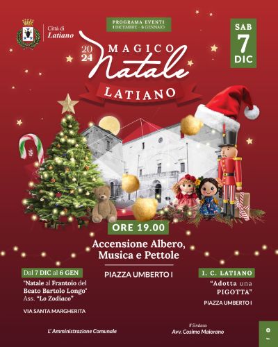 Inoltre, non perdete l’iniziativa "Adotta una Pigotta" organizzata dall'Istituto Comprensivo di Latiano, un gesto di solidarietà che renderà ancora più speciale questo Natale.