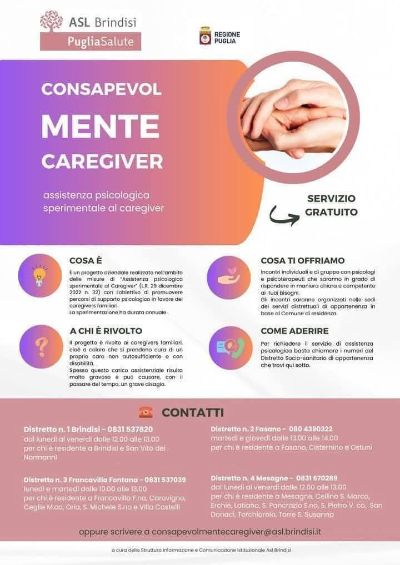 Per richiedere il servizio di assistenza psicologica basta chiamare il numero del Distretto Socio-sanitario di appartenenza: 0831 670289.