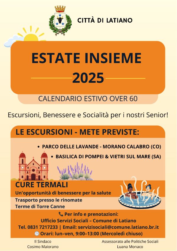 L’iniziativa, promossa dall’Assessorato alle Politiche Sociali, sarà l’occasione per presentare ufficialmente il calendario estivo delle attività rivolte agli Over 60, pensato per offrire momenti di svago, socializzazione, crescita culturale e benessere psicofisico.