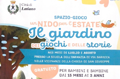 Attraverso apposito modulo di partecipazione è possibile effettuare iscrizione al progetto spazio gioco “Un nido per l’estate” che si svolgerà nel periodo 8 luglio - 31 agosto con interruzione settimanale dal 12 al 18 agosto, dalle ore 8.30 alle ore 12.30 presso la scuola dell’Infanzia Statale via Baracca.