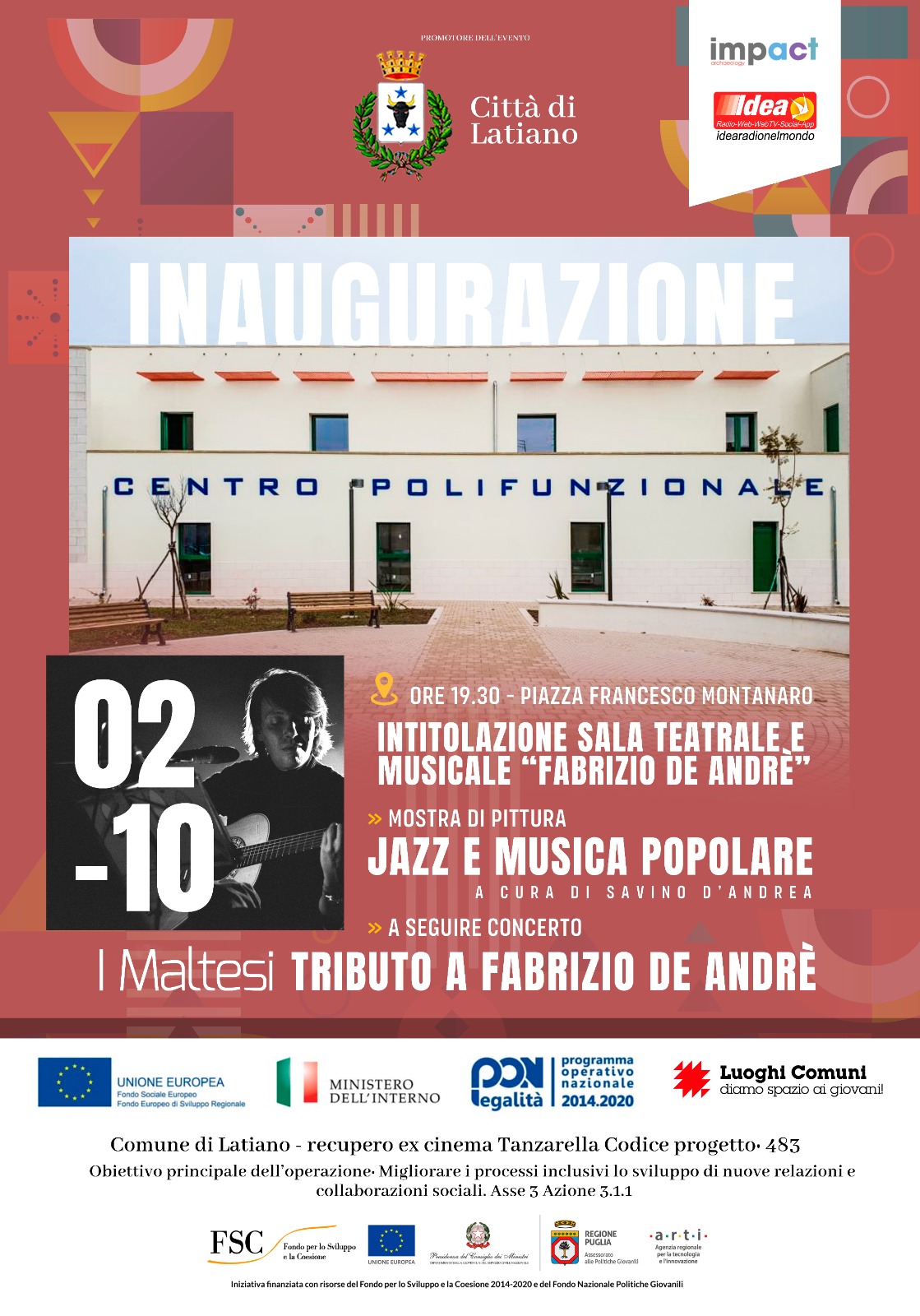 si procederà all'inaugurazione della sala teatrale al cantautore "FABRIZIO DE ANDRE'"