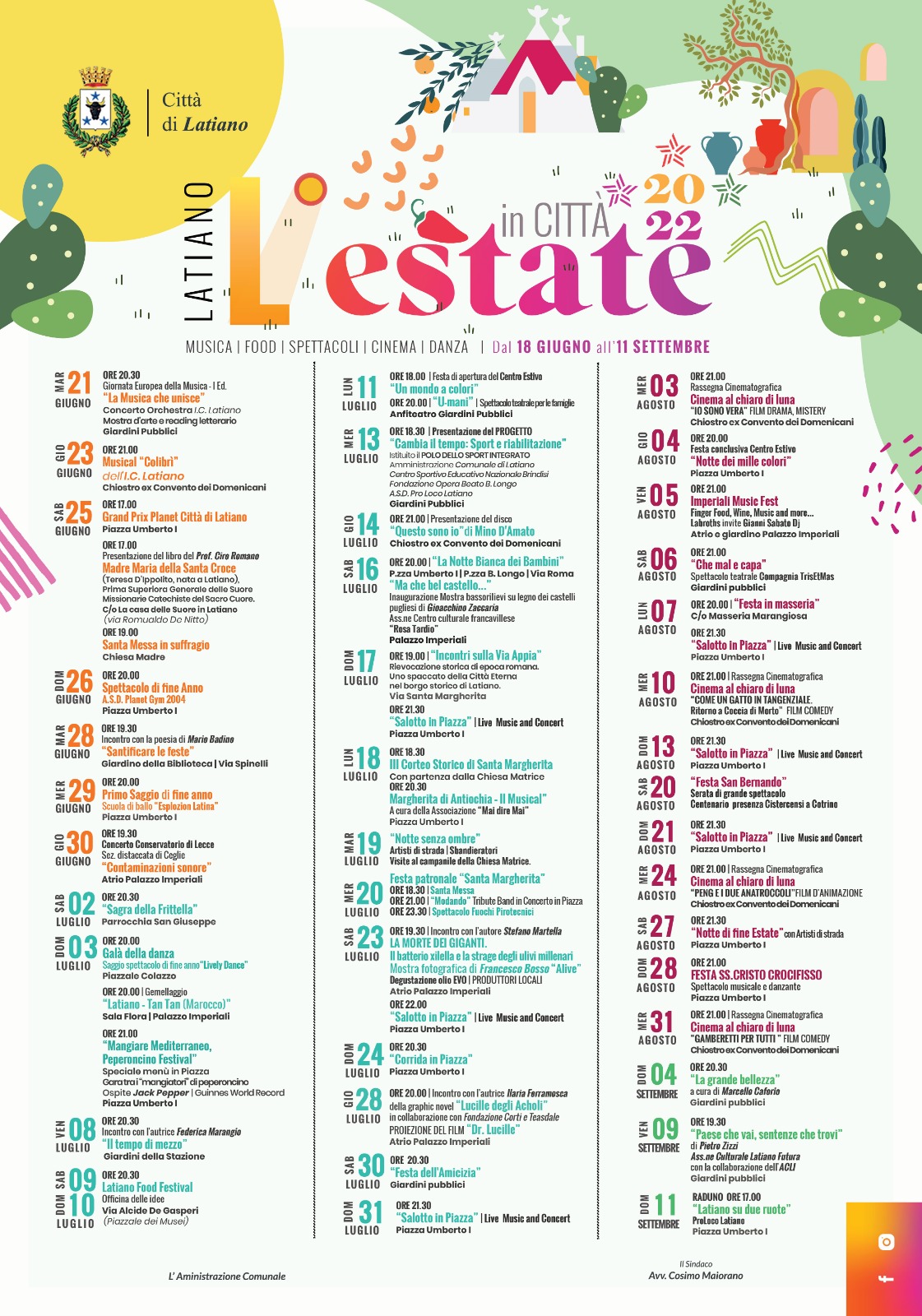L'Amministrazione Comunale invita tutti i cittadini a partecipare agli eventi e manifestazioni organizzati per il periodo estivo.