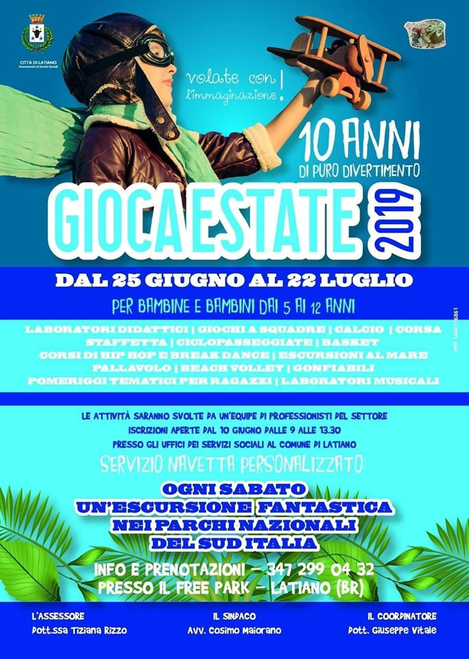 "GiocaEstate 2019" è un progetto ludico-ricreativo che offre ai bambini giochi a squadre, laboratori didattici, escursioni al mare, laboratori musicali e tanto altro ancora.