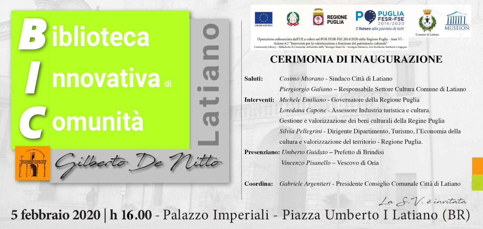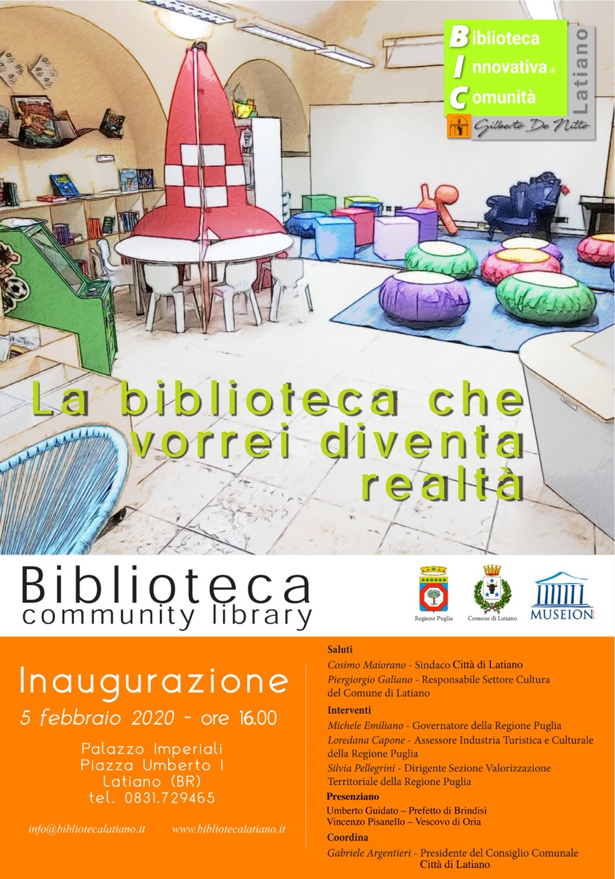 Mercoledi 5 febbraio ore 16:00, presso Palazzo Imperiali, Cerimonia di Inaugurazione della Biblioteca Innovativa di Comunità.