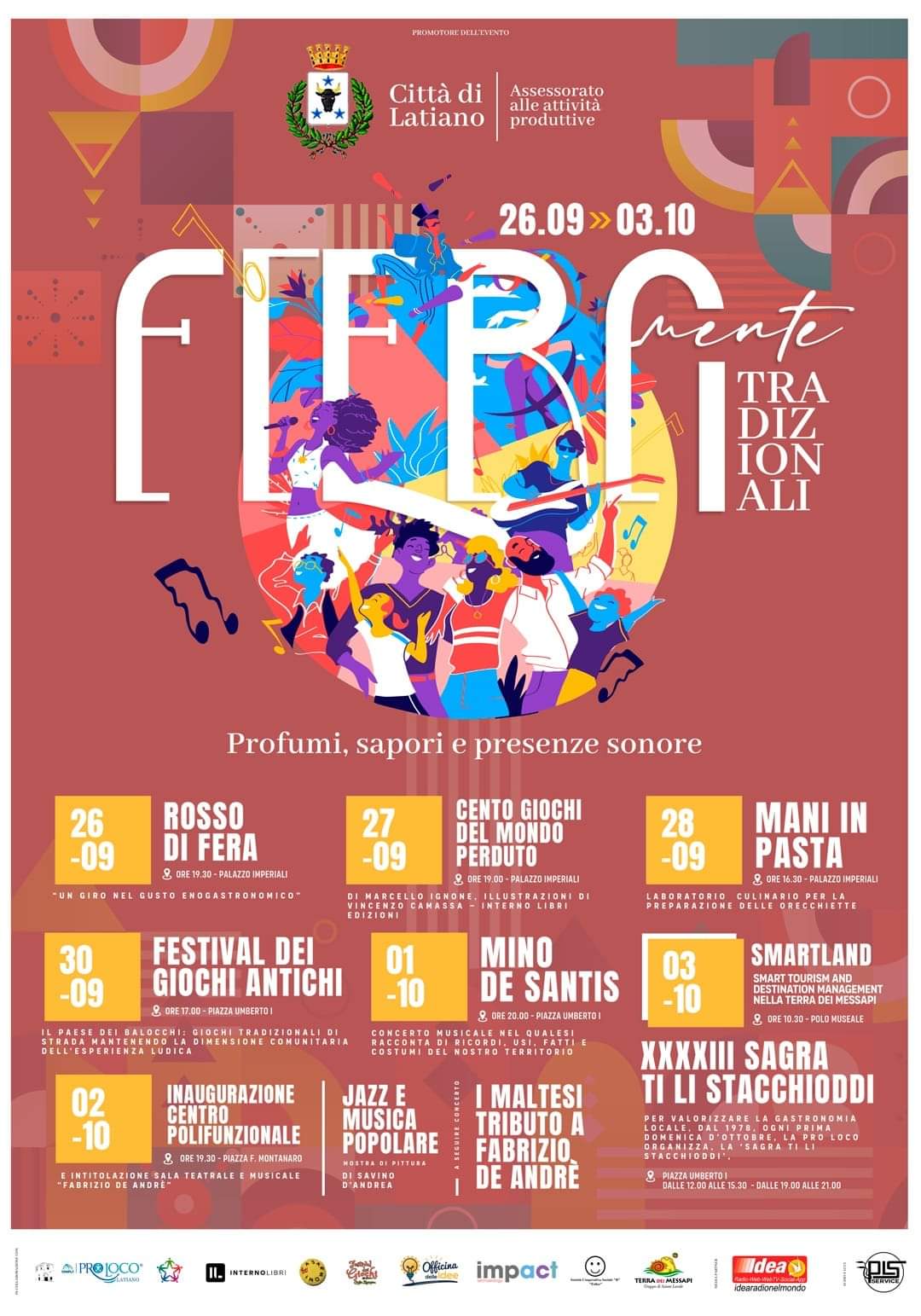 Dal 26 settembre al 3 ottobre la città di Latiano sarà animata da “Fiera-mente tradizionali – Profumi, sapori e presenze sonore”.