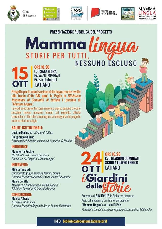 Domenica 25 ottobre alle ore 10.30 con l'arrivo del ๐ฝ๐๐๐ก๐๐ค๐๐ช๐, ๐ก๐ ๐๐๐๐ก๐๐ค๐ฉ๐๐๐ ๐๐ฉ๐๐ฃ๐๐ง๐๐ฃ๐ฉ๐, presso i Giardini Comunali di Latiano si avvia il programma di iniziative e laboratori di lettura in lingua madre, alla presenza della dott.ssa Lucia Di Palo, presidente del Comitato Esecutivo Regionale AIB.