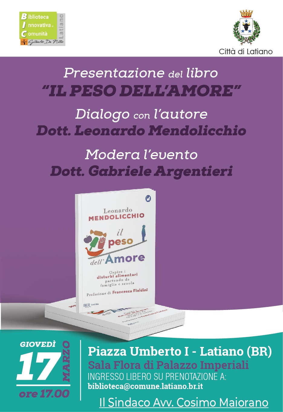 Giovedì 17 marzo 2022 ore 17.00 alla presentazione del libro "IL PESO DELL'AMORE" - dialogo con l'autore Dott. Leonardo Mendolicchio