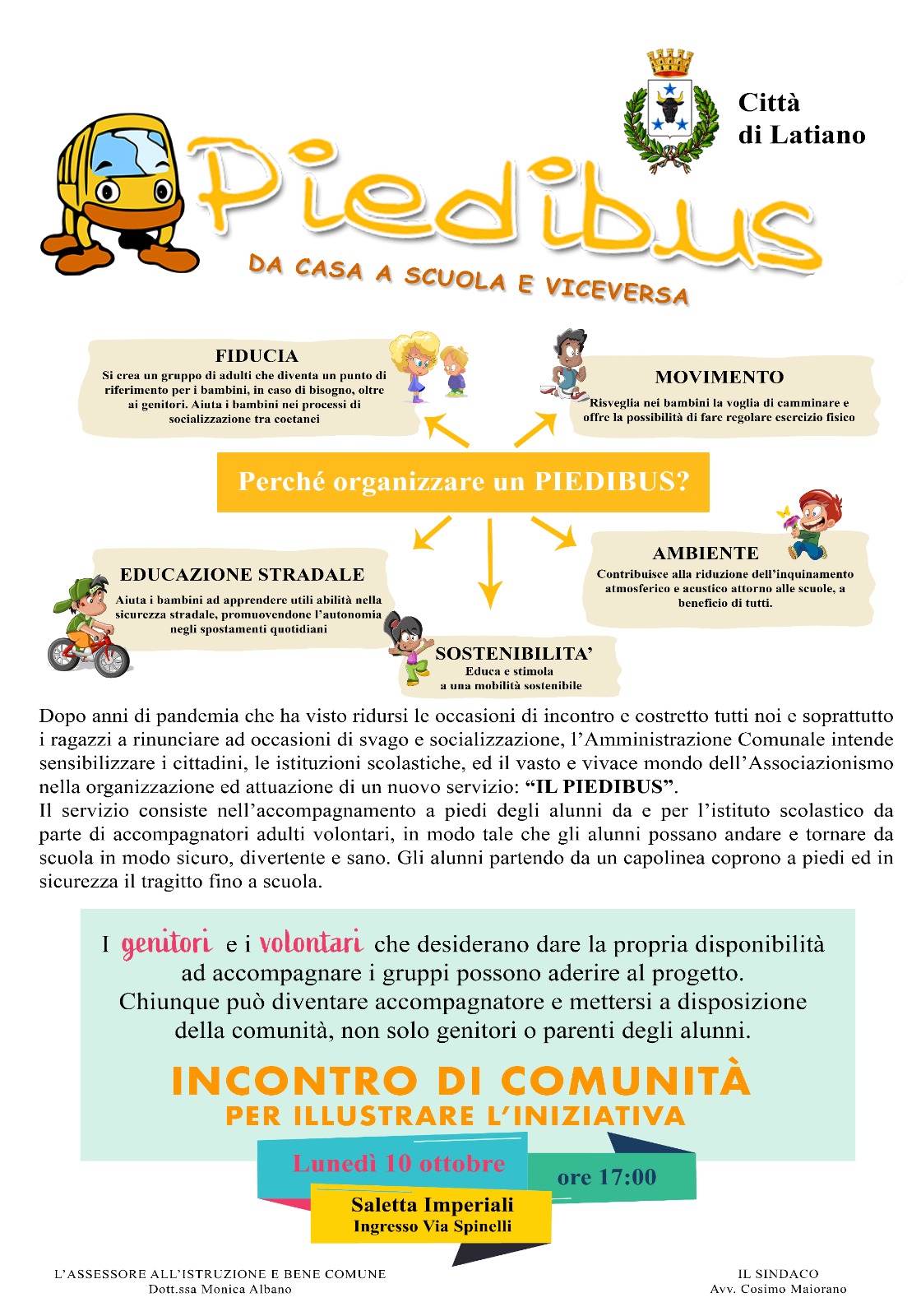 lunedì 10 ottobre ore 17.00 presso la Saletta Imperiali in via Spinelli inconro organizzativo del Piedibus.....