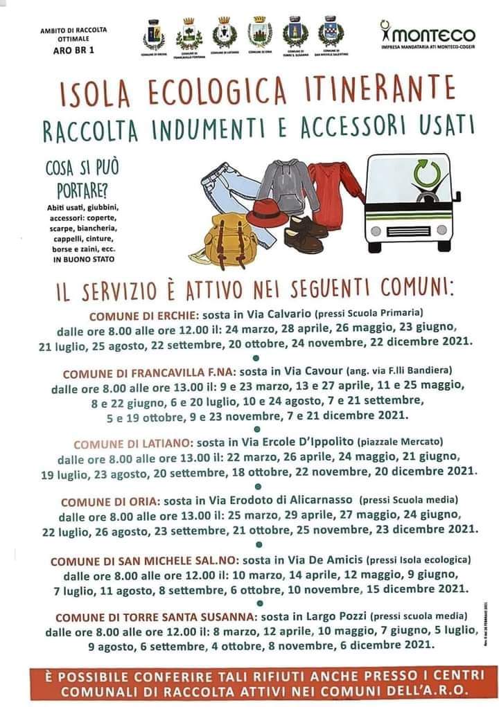 Il serivizio di raccolta indumenti e accessori usati è attivo nel Comune di Latiano